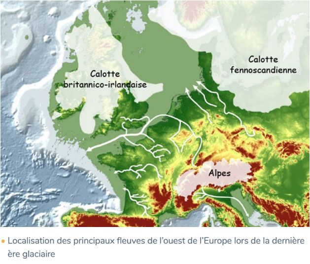 Le niveau de la mer était alors environ 120 mètres plus bas et le trait de côte, situé à l’ouest de la Bretagne. Ces dépôts ont été recouverts par la mer lorsque le climat s’est réchauffé et se trouvent, par conséquent, au large des principaux estuaires de nos façades maritimes.